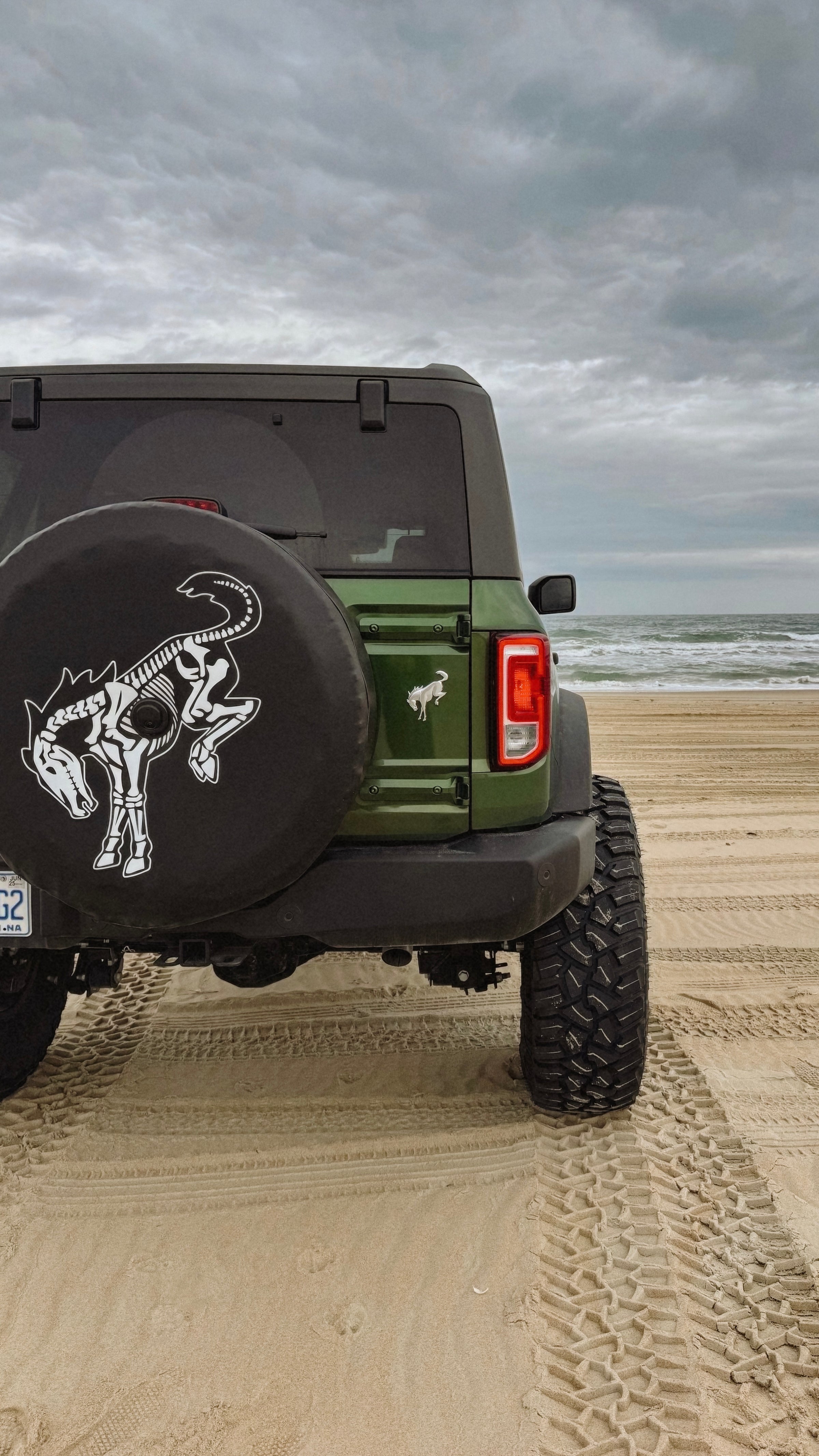 Protect your Ford Bronco with our heavy-duty tire covers made from marine-grade vinyl for maximum durability. Designed to withstand impact and weather resistance, these covers shield your spare tire from harsh weather, UV rays, and debris.